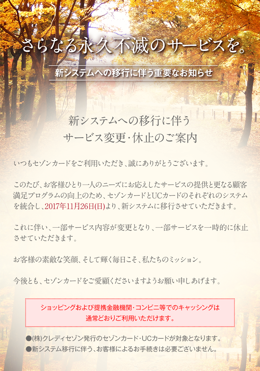セゾンカードの各種規約を2017年11月26日(日)付けで改定いたしました。