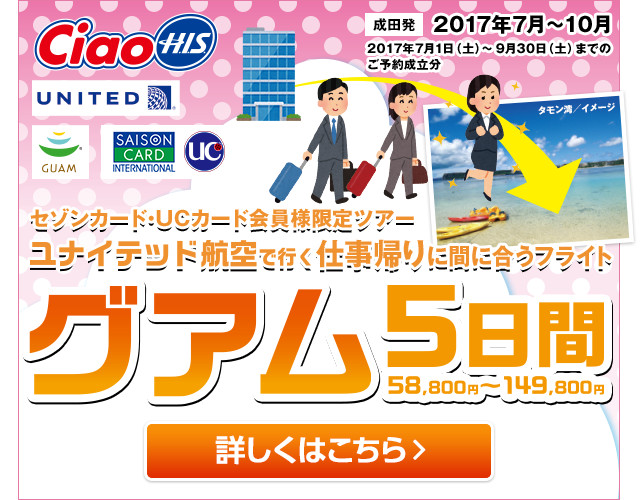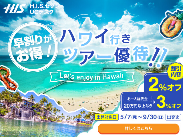 ※HISのホームページにてオンライン予約可能な海外パッケージツアー(首都圏、中部、関西、九州発着お一人様5万円以上の商品限定)にご利用いただけます。
