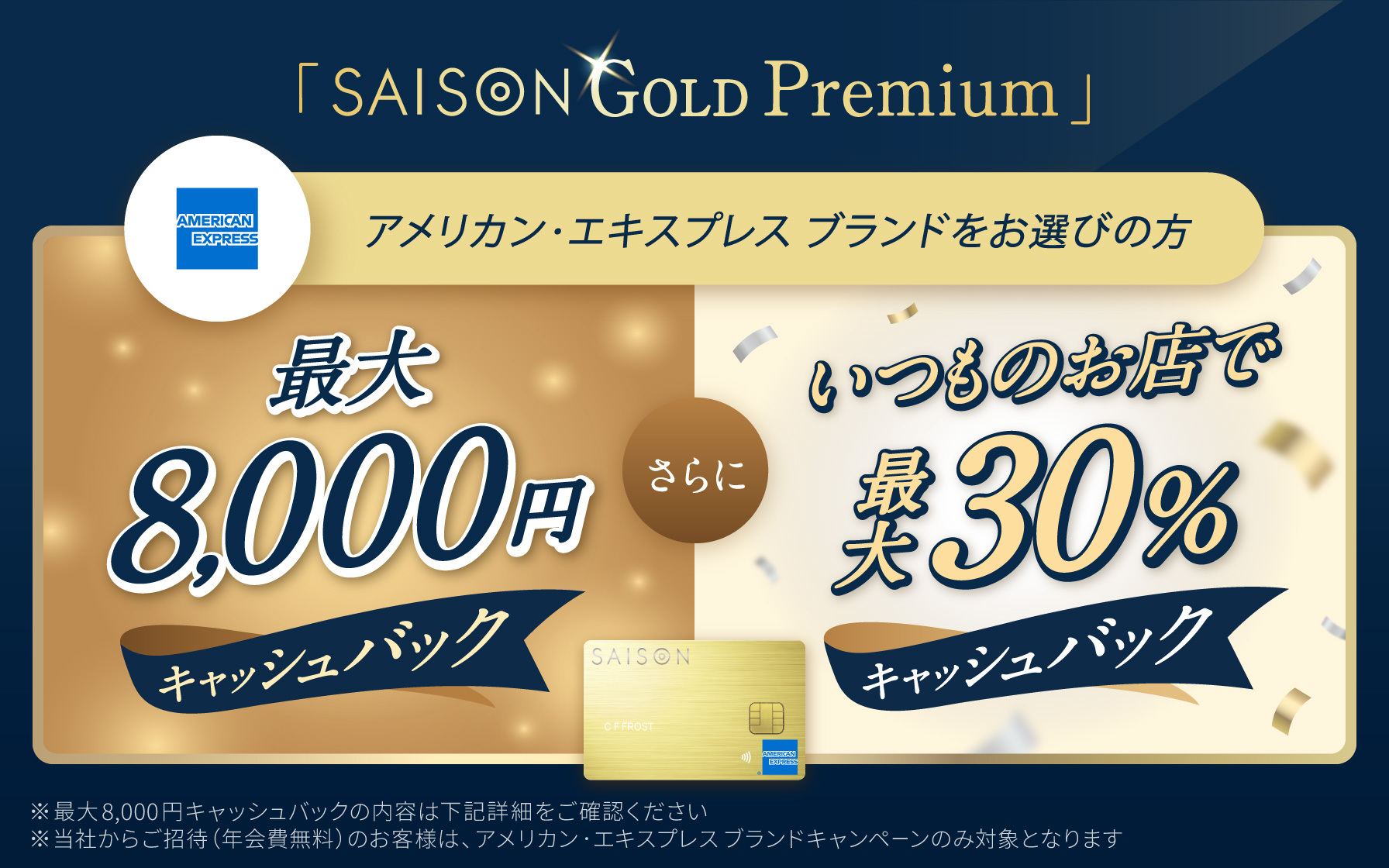 【新規入会特典】SAISON GOLD Premium アメリカン・エキスプレス®限定 事前エントリーで対象店舗にて最大30%キャッシュバック