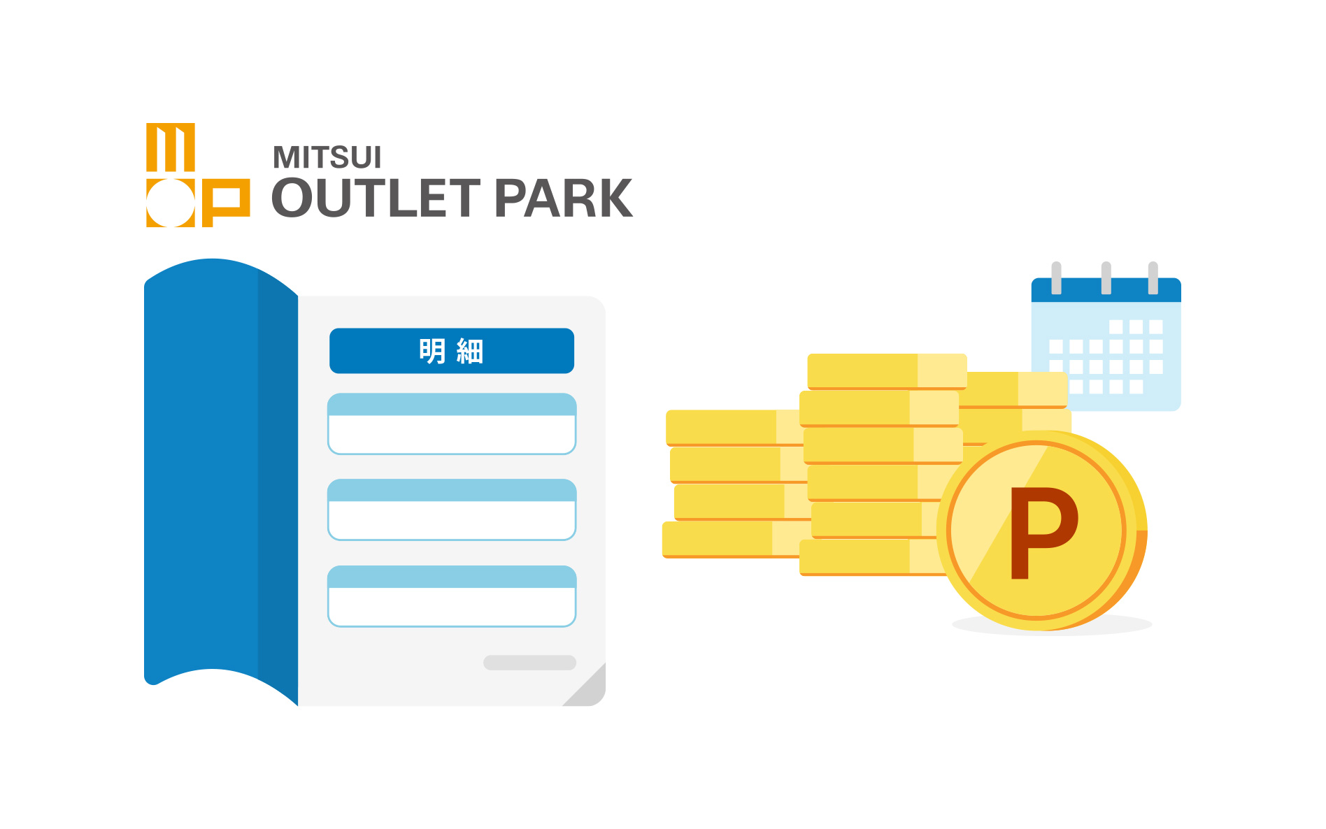 毎年11月(4月1日~9月30日ご利用分)と、5月(10月1日~3月31日ご利用分)に「ポイント明細のご案内」をお送りいたします。三井アウトレットパーク各施設の「カードデスク」までお持ちください。