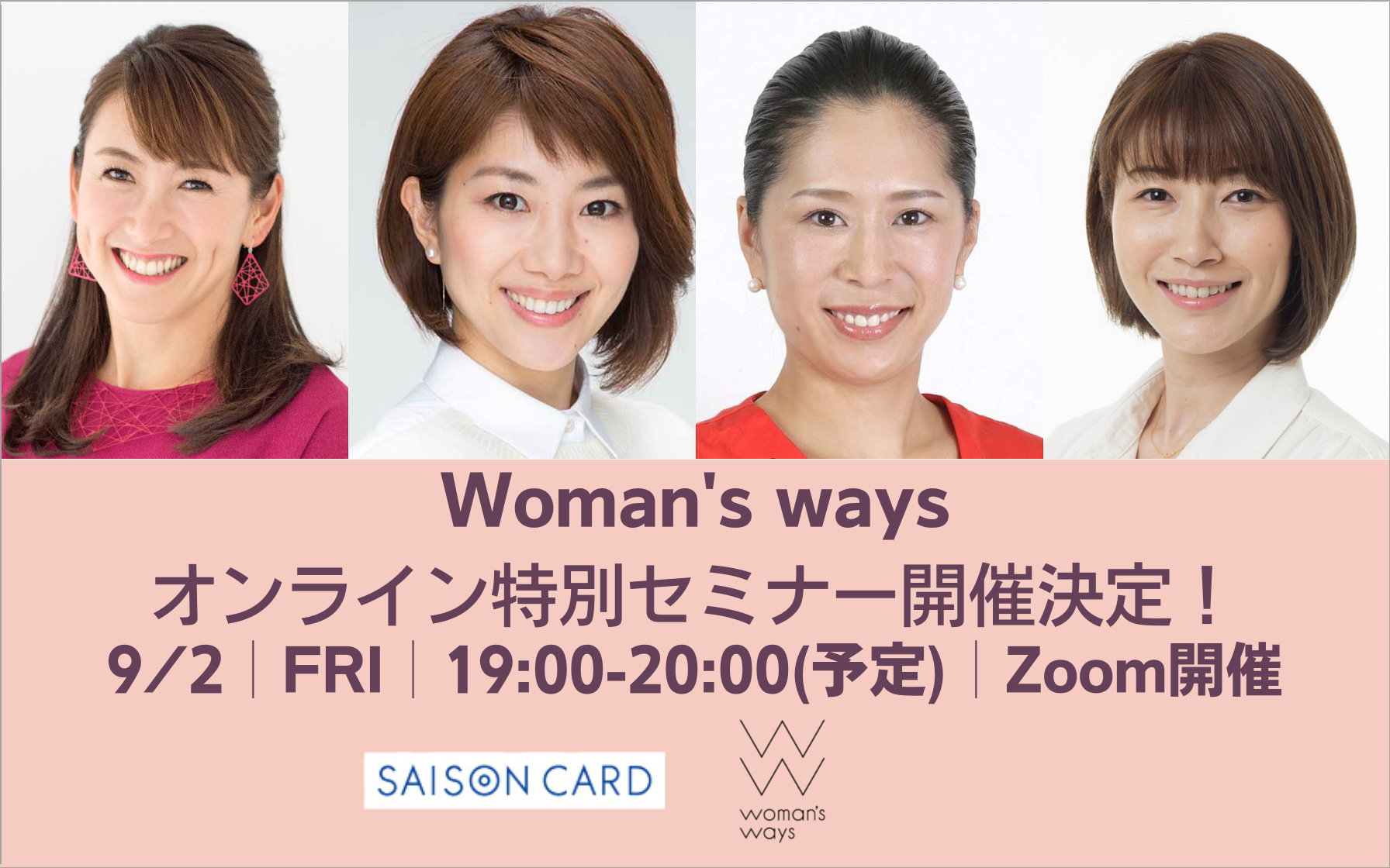 今回セゾンカードでは、一般社団法人Woman's waysから元女性アスリートである潮田玲子さん、中川真依さん、杉山愛さん、狩野舞子さんをお招きして自身の体に向き合うオンラインセミナーを開催いたします。参加無料のこの企画、少しでも気になった方はぜひ、ご参加ください。
