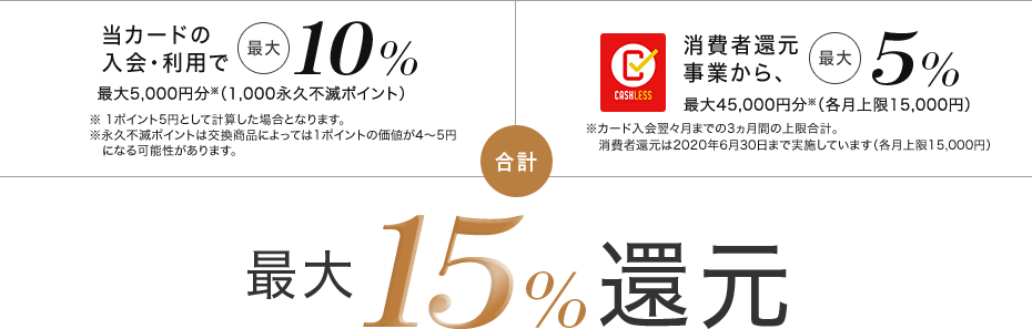 - ファミリーカード(家族カード)ご利用分も特典進呈の対象です。進呈金額は本カード会員様のご利用分と合算のうえ、8,000円までとなります。