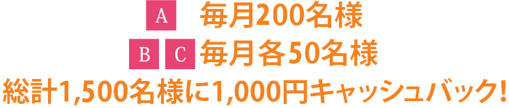 - ※ 当選者の発表は、各回該当のお支払分に充当し、ご利用明細への記載をもってかえさせていただきます。なお、お支払額がキャッシュバック金額に満たない場合は、残金をお引落口座へご入金いたします。