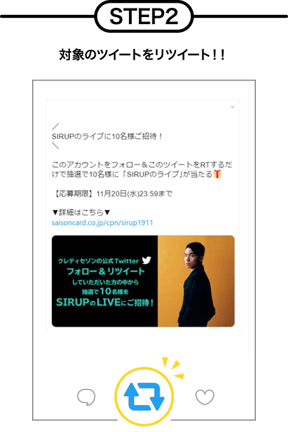 期間中、クレディセゾンの公式Twitterフォロー&リツイートしていただいた方の中から抽選で5組10名様にSIRUPのLIVEにご招待いたします。