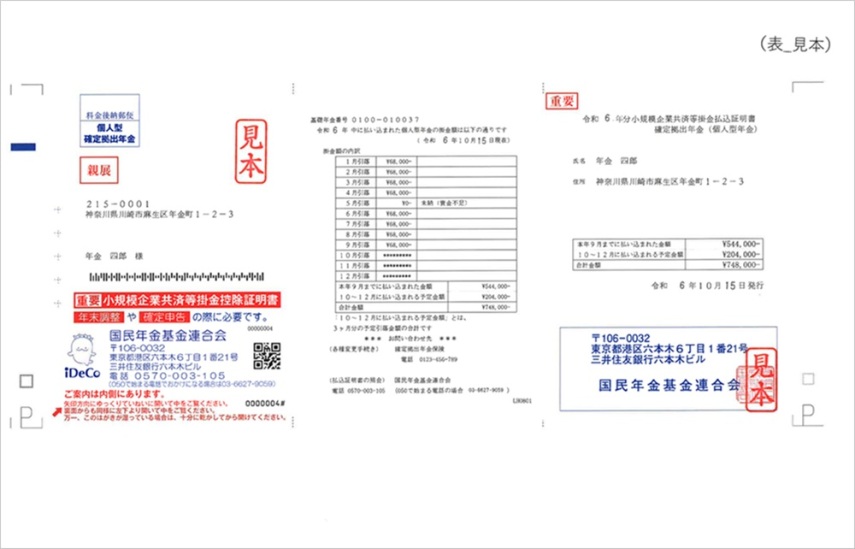 「個人払込」を選択している加入者には、毎年10月頃に「小規模企業共済等掛金控除証明書」が国民年金基金連合会から届きます。
