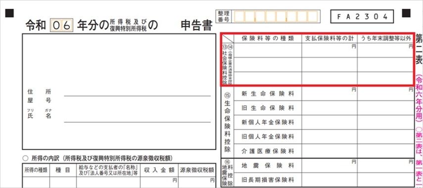 給与所得者の保険料控除申告書は、生命保険料控除、地震保険料控除、給与から天引きされる以外の社会保険料控除がある場合、それらの控除についても記入が必要です。