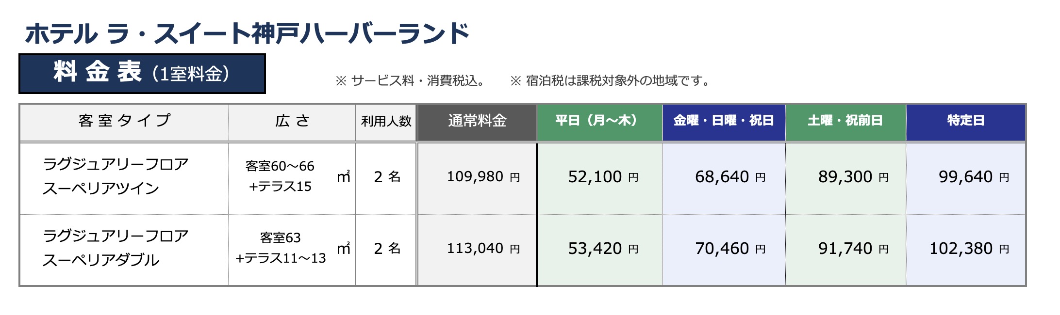 - ご優待料金・割引率は予告なく変更される場合がございます。詳しくはご予約の際にご確認ください。
