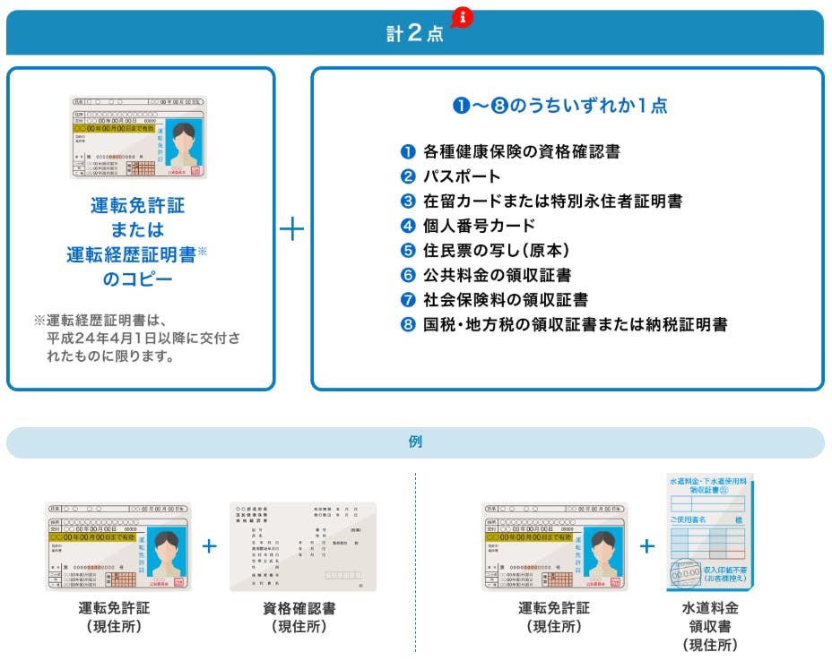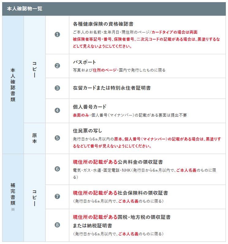 - 本人確認書類に有効期限がある場合、期限内の日付があるものに限ります。
