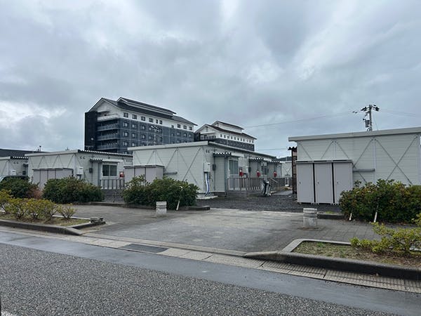 輪島市の市街地中心部の海岸付近にある、プレハブ型の応急仮設住宅です。