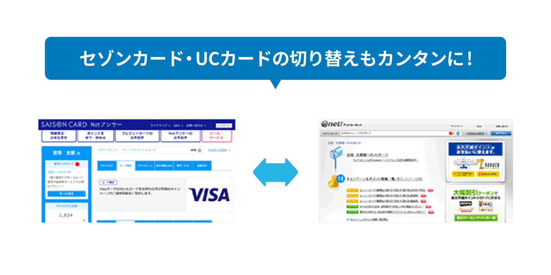 また、UCカードもお持ちの方は、「セゾンNetアンサー」と「UCカードアットユーネット!」の相互のおまとめも可能です。