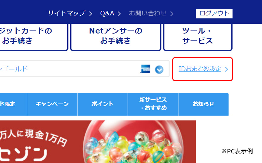 - Netアンサー(アットユーネット!)未登録のカードはIDおまとめ設定できません。あらかじめご登録のうえ、IDおまとめ設定してください。