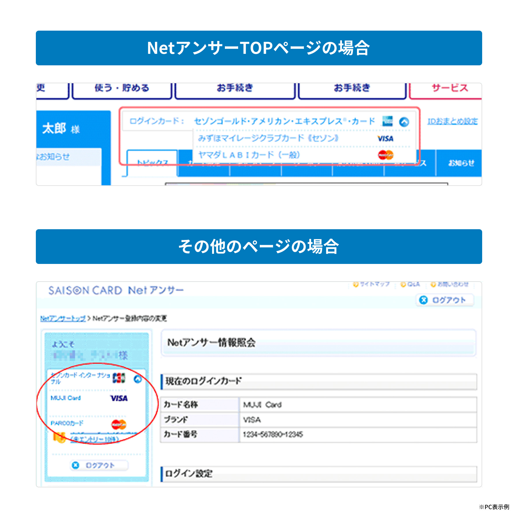 IDおまとめ設定が済んでいれば、ログインカード名をプルダウンすると、他のカードのIDにカンタンに切り替えることができます。