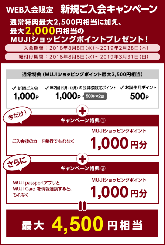 - 無印良品のポイントはMUJI Cardに加算いたします。