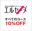 ボディ(サイズダウン)コース、フェイシャルコース、脱毛コースなど、すべてのコースがセゾンエルセーヌカードのお支払で10%OFFになります。