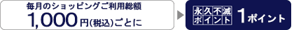 永久不滅ポイントは1ヵ月のクレジットショッピングご利用総額1,000円(税込)ごとに1ポイント貯まります。有効期限はありません!