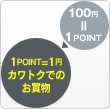 現金でもクレジットカード払いでも、カワトクでのお買いあげ100円(税抜)ごとに1ポイント。