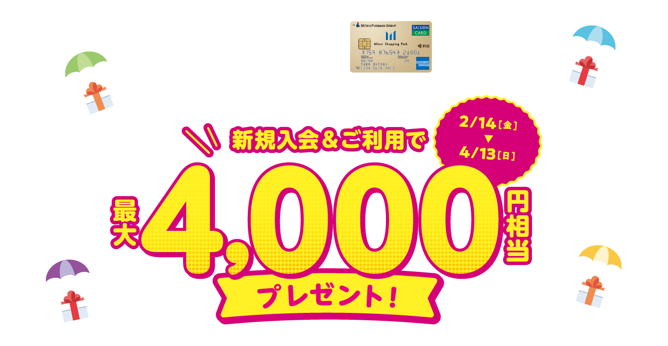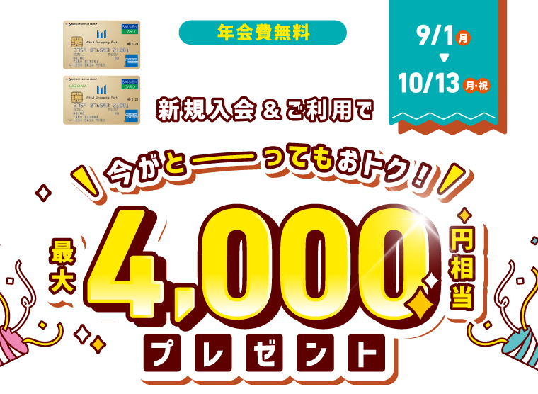 - ※特典内容はカードブランドやお申し込み方法により異なります。