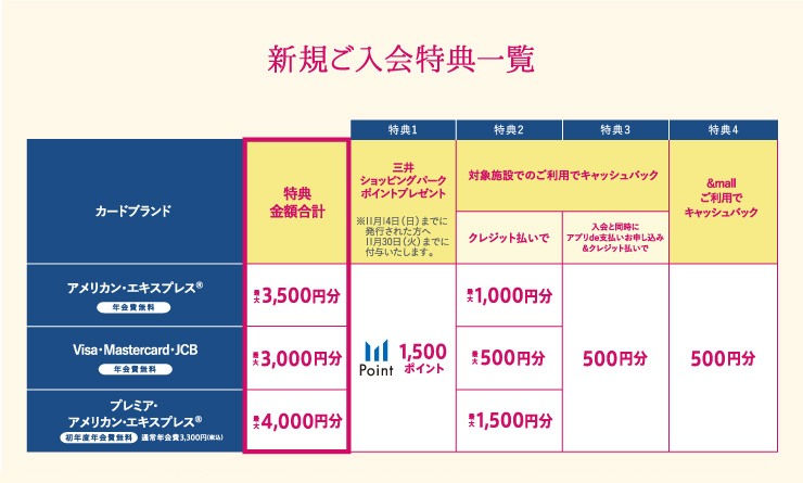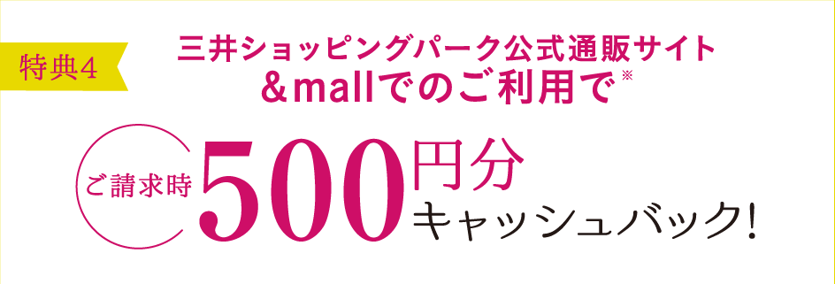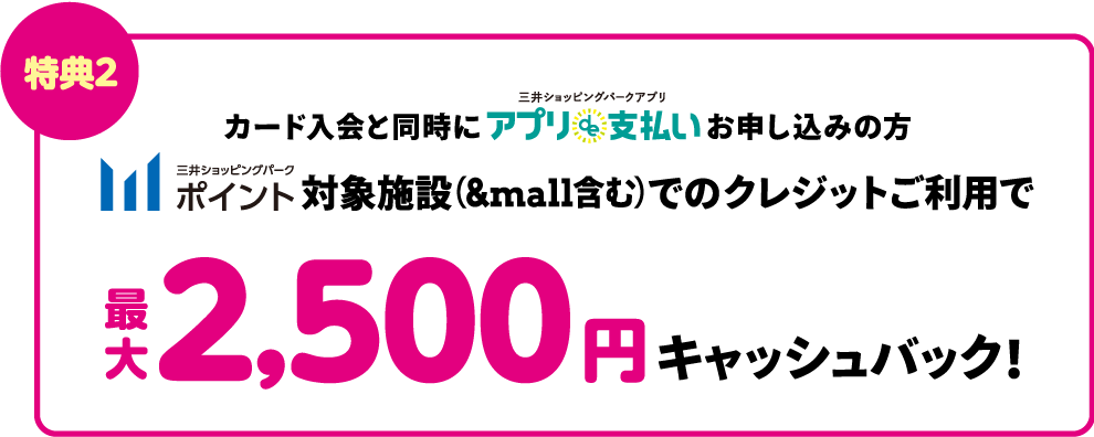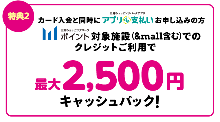 - <特典2>三井ショッピングパークポイント対象施設でのクレジット利用でキャッシュバックについて