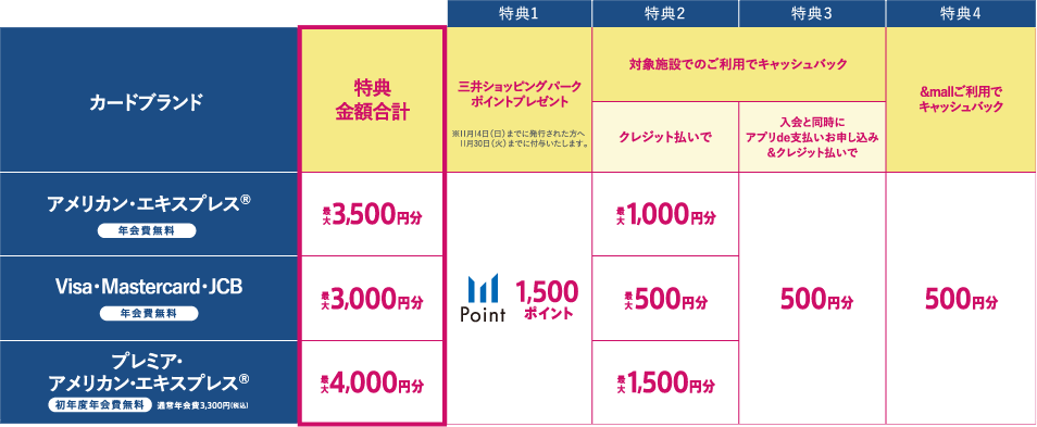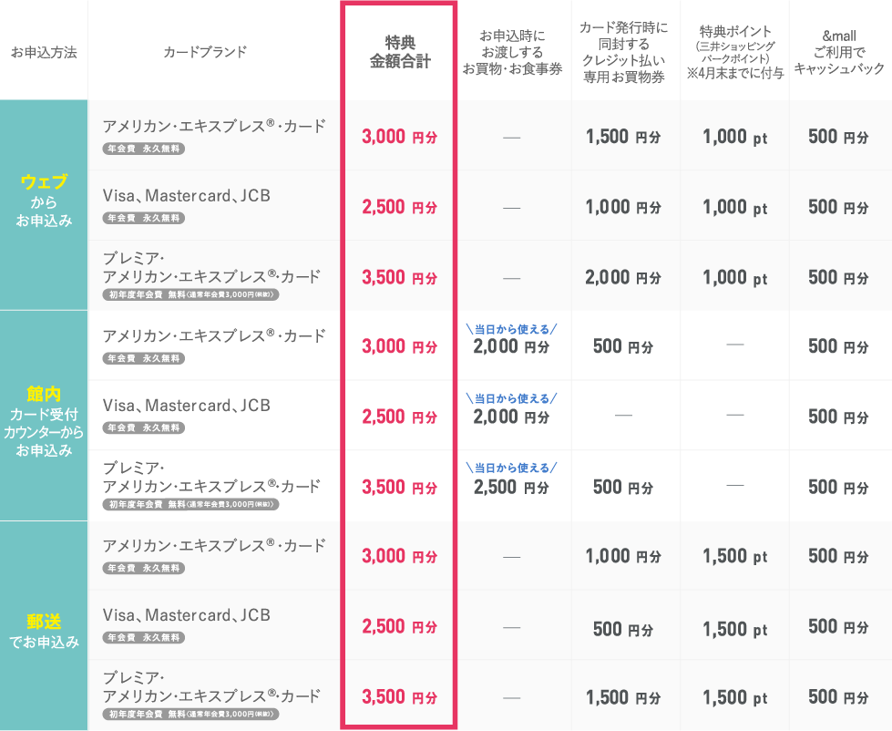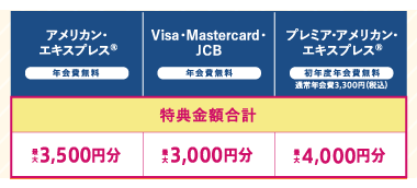 - ●お選びいただくカードブランドにより特典金額が異なります。