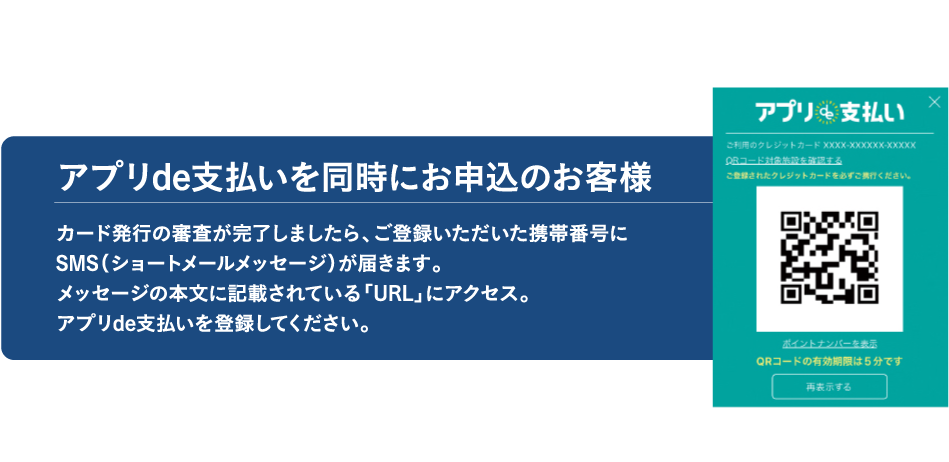 - ※カードはご登録住所に郵送されますので必ずお受け取りをお願いいたします。お受け取りがなく一定期間を過ぎるとご解約となりアプリde支払いもご利用いただけなくなります。