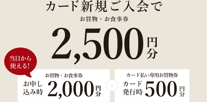 - ※審査により、カード発行までにお時間をいただく場合がございます。審査によりお申し込みの意に添えない場合がございますので、あらかじめご了承ください。