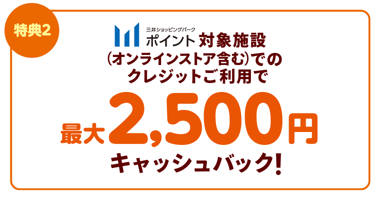 - <特典2>三井ショッピングパークポイント対象施設でのクレジット利用でキャッシュバックについて