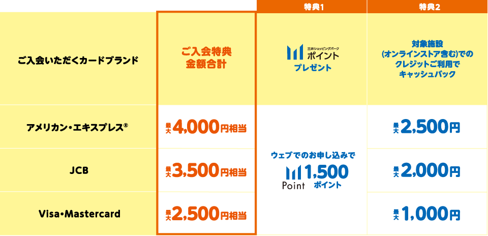 - ●お選びいただくカードブランドにより特典金額が異なります。