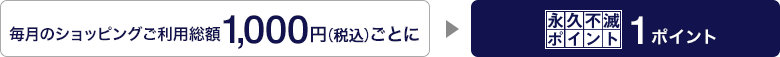 永久不滅ポイントは1ヵ月のクレジットショッピングご利用総額1,000円(税込)ごとに1ポイント貯まります。有効期限はありません!