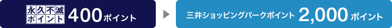 貯まる!クレジット支払い1,000円(税込)で1ポイント。交換できる!永久不滅ポイント400ポイントで三井ショッピングパークポイント2,000ポイント。