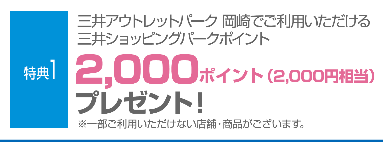 特典1 三井アウトレットパーク 岡崎でご利用いただける三井ショッピングパークポイントについて