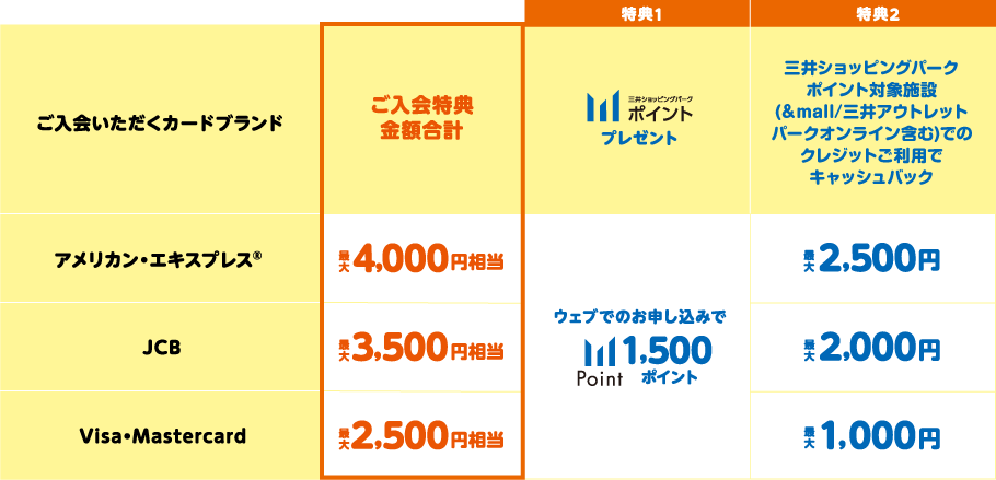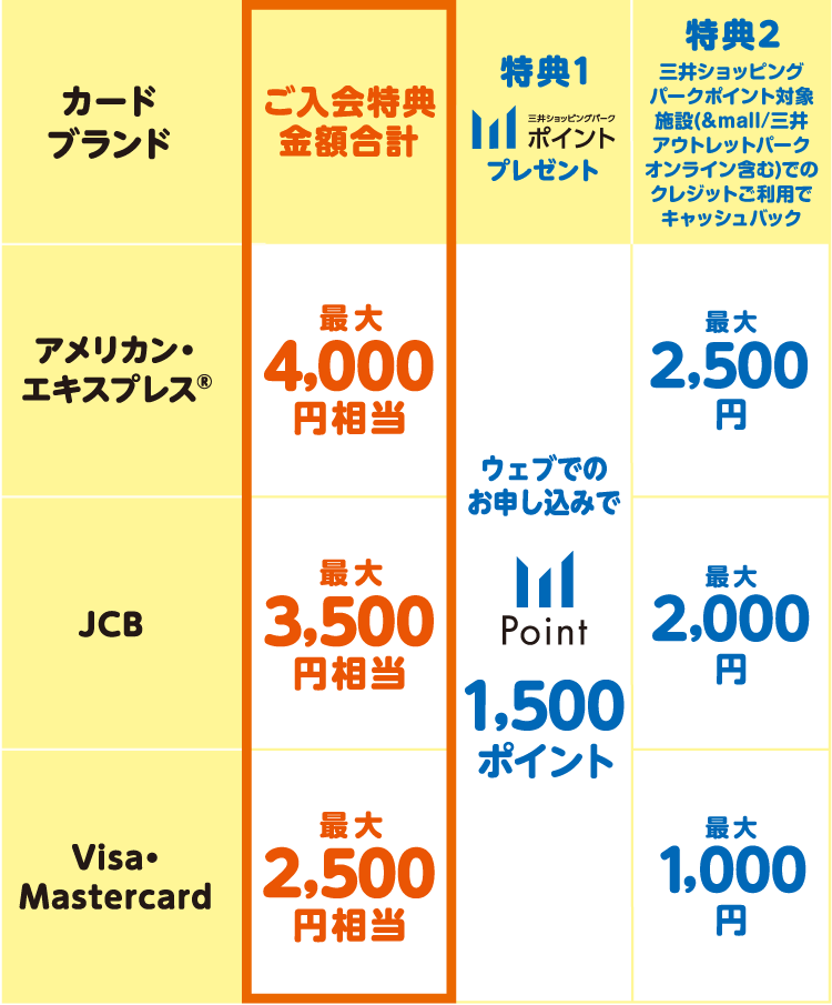 - ●お選びいただくカードブランドにより特典金額が異なります。