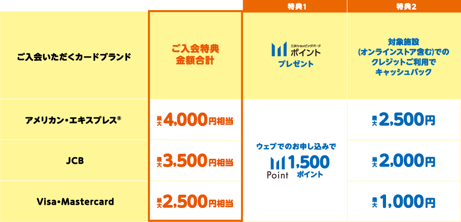 - ●特典内容はカードブランドやお申し込み方法により異なります。