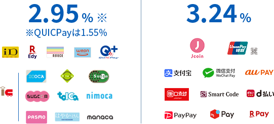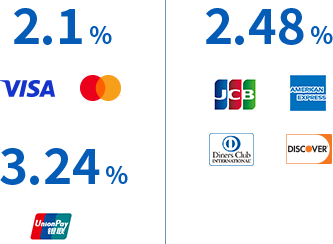 ・申し込み後に年間取扱高がVisa2,000万円、Mastercard1,000万円を超えた場合は、スタンダードプランに変更となり、Visa/Mastercardの決済手数料率は2.75%、JCB/AMEX/Diners/DISCOVERの決済手数料率は3.24%となります。その後は取扱高を問わず変更後の決済手数料率が継続となります