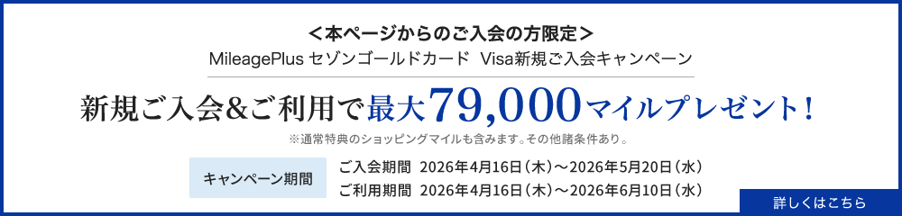 - 間違ったマイレージプラス会員番号をご登録の方、また特典のマイルを進呈する時点でカードを解約されている場合は特典の対象外となります。