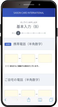 - ・お申し込みには、メールアドレスの登録が必要となります。メールアドレスをドメイン指定されている場合には、[@mail.saisoncard.co.jp]からのメールが受信できるように設定をお願いいたします。