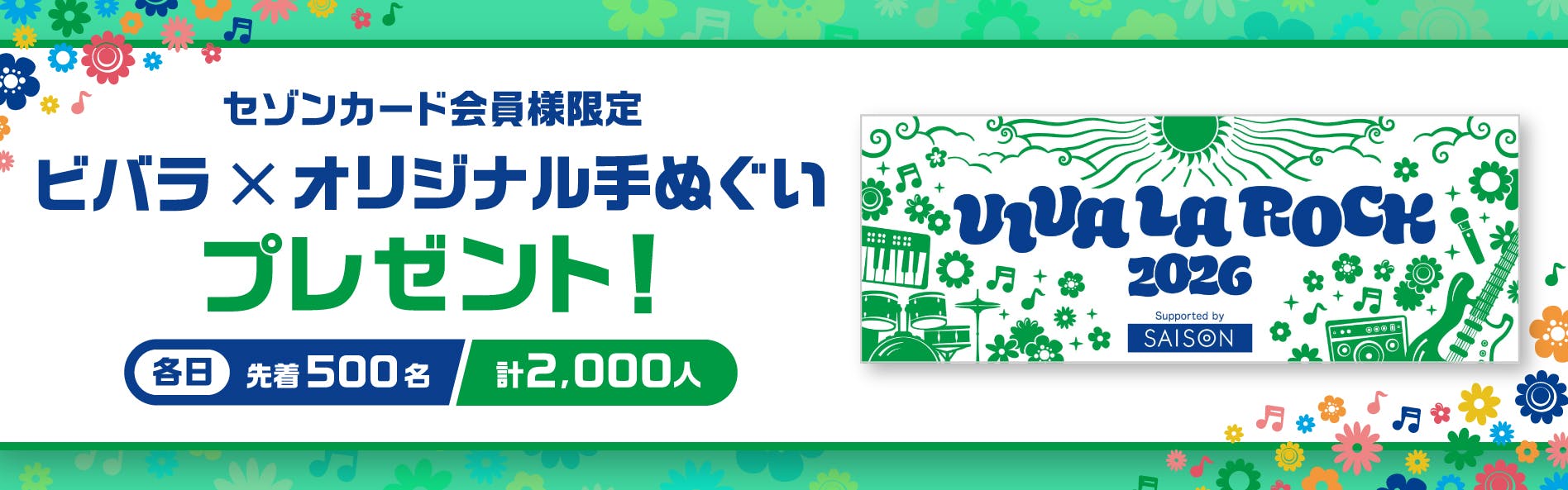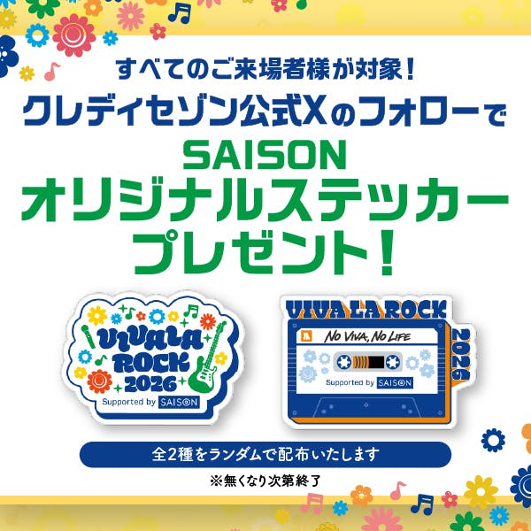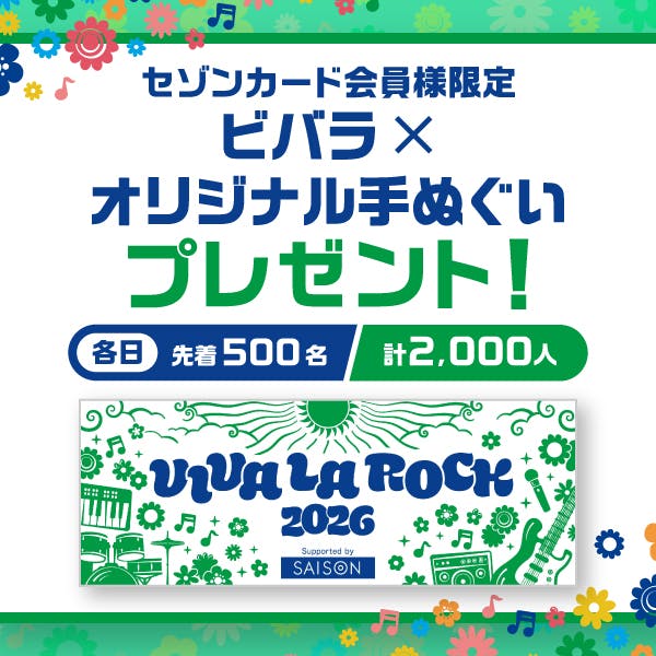 今年のゴールデンウィークは、セゾンでビバラを楽しもう。最高の4日間をもっと快適に、もっと楽しく。 チケットが当たるSNSキャンペーンや、会場での会員限定の特典もご用意しております。 当日はぜひセゾンカードをご持参ください。