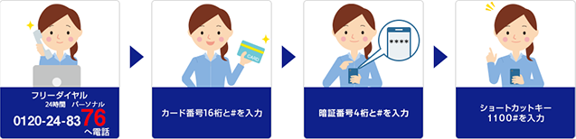 お手元にセゾンカードをご用意のうえ、ガイダンスにしたがって操作してください。