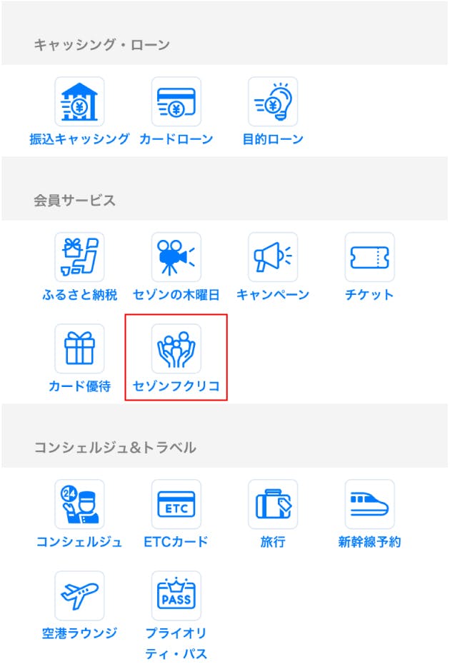 ③「会員サービス」内の「セゾンフクリコ」からサービスをご利用ください。